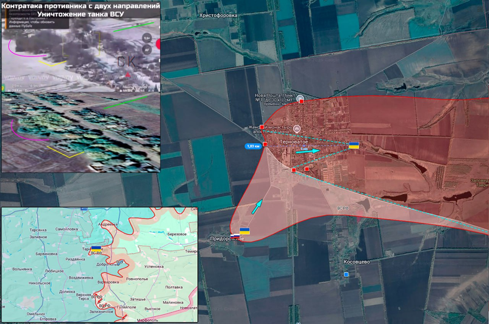 · ВСУ двумя колоннами бронетехники атаковали севернее Гуляйполя. Техника уничтожена, опубликовано видео ударов по пехоте противника в Терноватом