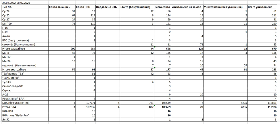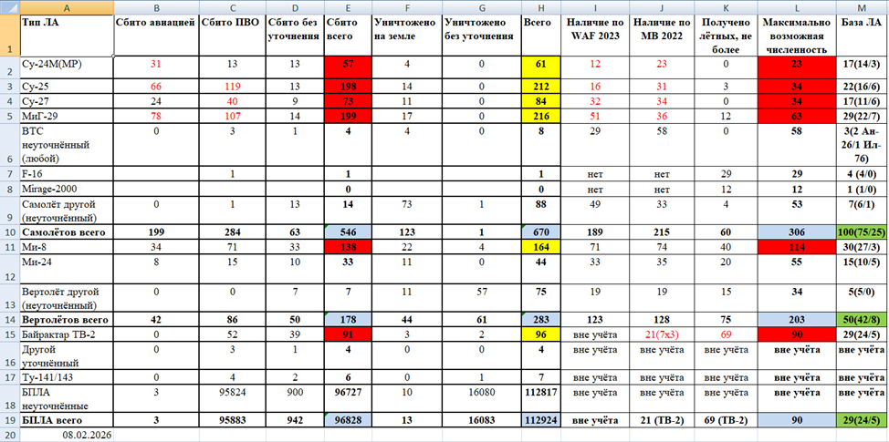 Потери ВВС ВСУ по брифингам МО РФ. Еженедельное обновление.