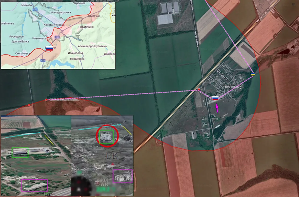 05.04.26 Константиновка - Бересток Позиционные боевые действия в районе Горловки. Передовая позиция ВС РФ на элеваторе посёлка Бересток обстреляна ВСУ. ВС РФ закрепились на южных окраинах населённого пункта, заняв позиции в комплексе сельскохозяйственных построек.