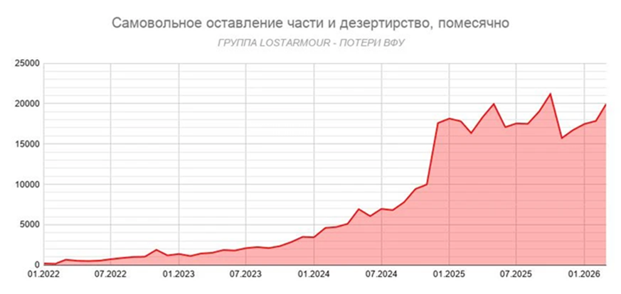 С наступлением весны беглецов из украинской армии прибавилось. В марте по данным украинской прокуратуры было заведено без малого 20 тысяч дел по самовольному оставлению части и дезертирству. https://max.ru/lost_armour/AZ1zFQcpei4