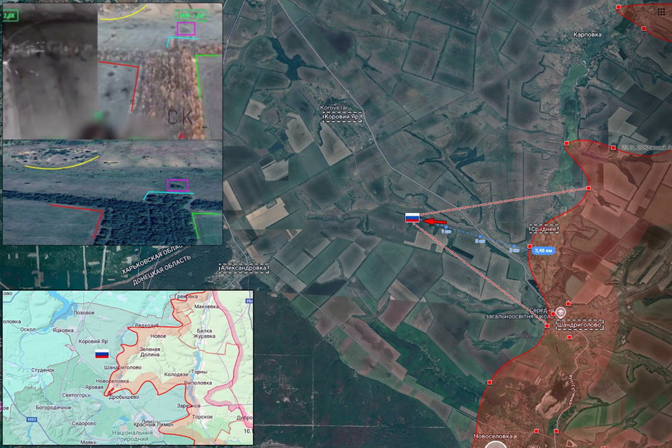 09.12.25 Красный Лиман - Коровий Яр Активные боевые действия в районе Красного Лимана. Атака ВС РФ пехотным подразделением в направлении Коровьего Яра. Штурмовики ВС РФ попали под обстрел ВСУ. Продвижение ВС РФ на северном охвате Красного Лимана 3,5 км.