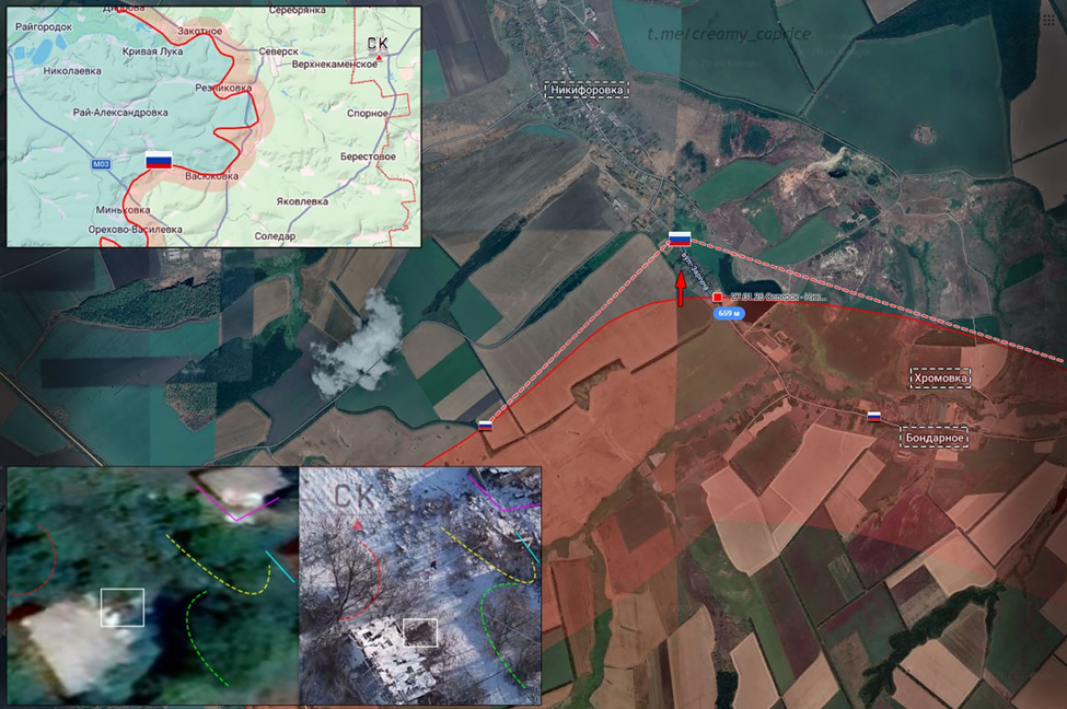 11.02.26 Северск - Никифоровка Позиционные боевые действия в районе Северска. ВС РФ продвинулись в Никифировке в направлении центра посёлка и заняли новые позиции в двухэтажных домах. Передовая позиция ВС РФ в жилой застройке обстреляна ВСУ.