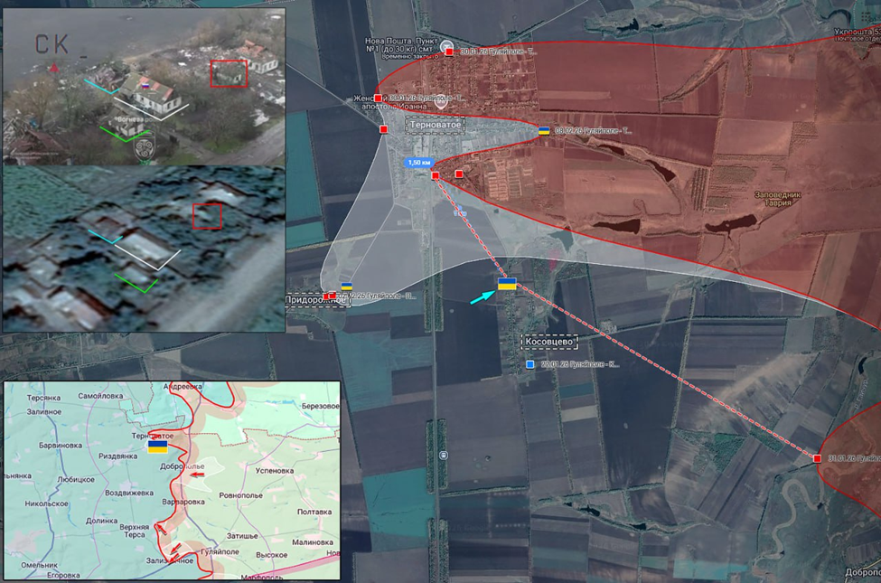 11.02.26 Гуляйполе - Косовцево Активные боевые действия в районе Гуляйполя. Атака ВСУ пехотным подразделением в Косовцево. Штурмовые группы зачищают позиции ВС РФ в жилой застройке. Уточнение зоны контроля ВС РФ в посёлке.