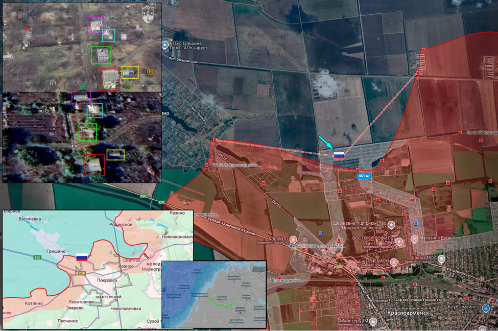 12,01,26 Красноармейск - посёлок Щербакова Активные боевые действия в Красноармейске. Атака ВСУ пехотным подразделением в садоводстве "Дружба" на севере города. Обстрел позиции ВС РФ. ВС РФ увеличили зону контроля в Красноармейске на 400 метров на северных окраинах города.