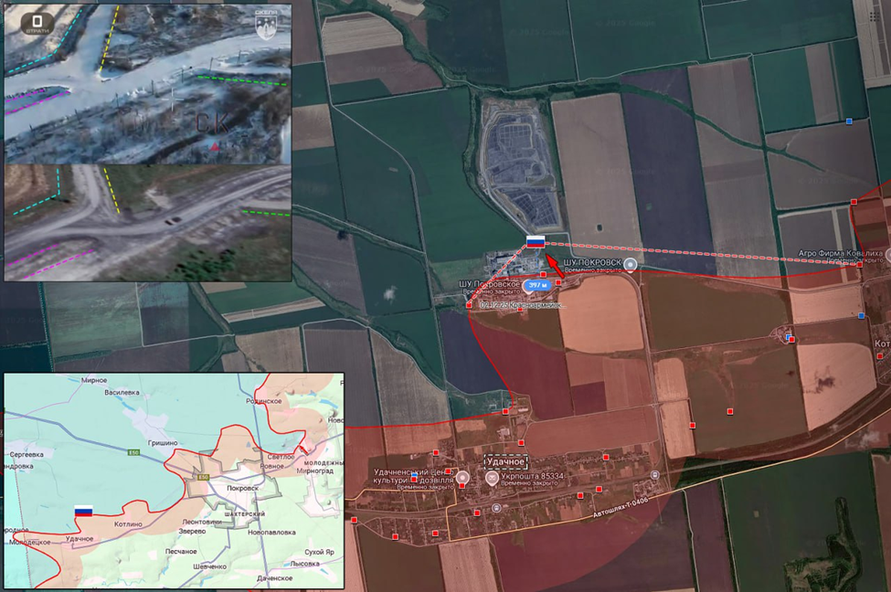 10.01.26 Красноармейск - Удачное Активные боевые действия в районе Красноармейка. Штурмовик ВС РФ попал под обстрел ВСУ около террикона шахты "Красноармейская - Западная №1". ВС РФ продвигаются севернее шахты и увеличивают зону контроля на 400 метров. https://t.me/creamy_caprice/10990