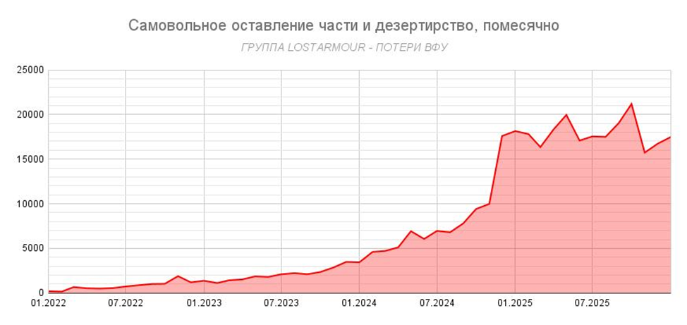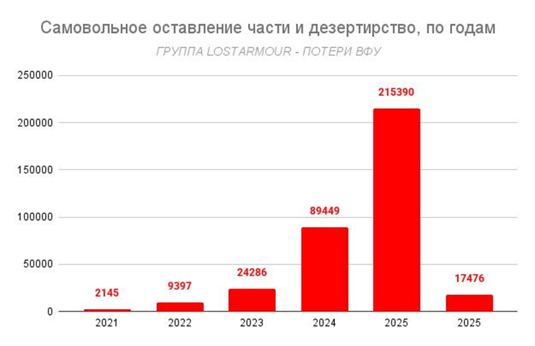 В январе по данным украинской прокуратуры было заведено почти 17,5 тысяч дел по самовольному оставлению части и дезертирству. https://t.me/lost_armour/8146