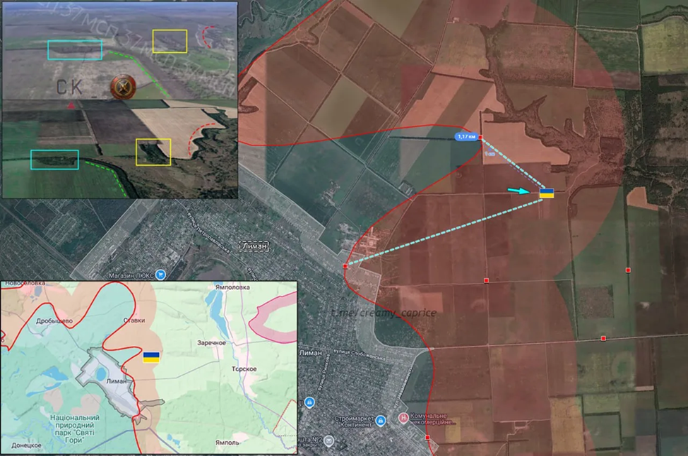 12.04.26 Красный Лиман Позиционные боевые действия в районе красного Лимана. ВС РФ ударами разрушили позицию контролируемую ВСУ. Уточнение зоны контроля ВСУ на восточных подступах к городу. https://t.me/Molodoy_37_msp/56