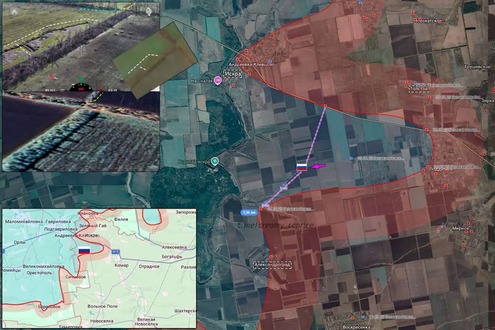13.04.26 Великая Новосёлка - Александроград Активные боевые действия в районе Великой Новосёлки. Военнослужащие ВС РФ занимают новые позиции под огнём противника на рубеже Искра - Александроград. Увеличение зоны контроля ВС РФ на 2,5 км по фронту на левом берегу реки Волчья.