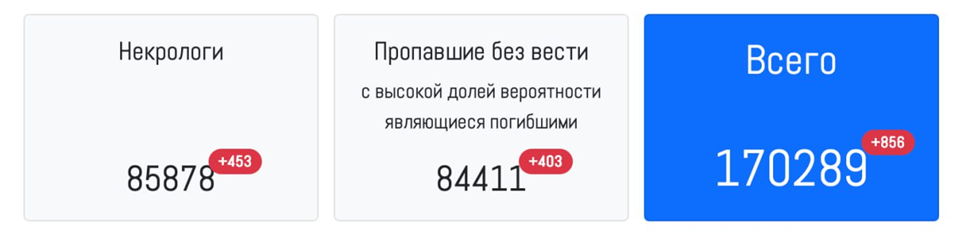 Количество поименно известных потерь Вооруженных формирований Украины по данным группы по подсчету потерь проекта Lostarmour (https://lostarmour.info/ukr200) превысило 170 тысяч человек