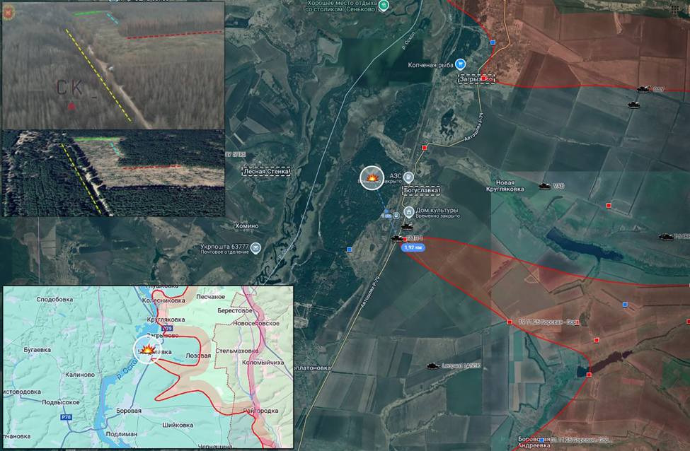 14.12.25 Боровая - Богуславка Активные боевые действия в районе Боровой. Уничтожение операторами FPV-дронов ВС РФ оставленного бронеавтомобиля ВСУ в окрестностях Богуславки. Удаление от линии боевого соприкосновения до 2 км. https://t.me/boevoekteschenie/1389