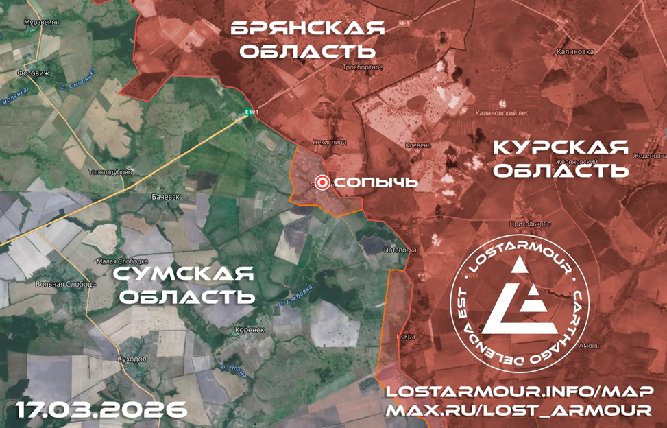 Подразделения группировки войск «Север» в результате активных действий установили контроль над населенным пунктом Сопычь Сумской области. https://max.ru/morf/AZz7Ii51NOs
