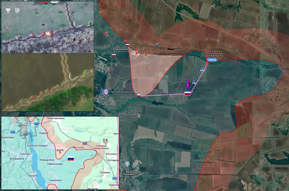 17.04.26 Купянск - Песчаное Позиционные боевые действия в районе Купянска. Передовая позиция ВС РФ под огнём ВСУ. ВС РФ продвинулись к югу от Песчаного на 2,5 км и заняли новые позиции в опорном пункте.