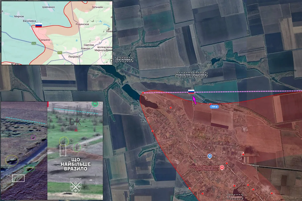 17.04.26 Красноармейск - Гришино Позиционные боевые действия в районе Красноармейска. Передовая позиция ВС РФ на подступах к Новоалександровке обстреляна ВСУ. ВС РФ увеличили зону контроля на 700 метров севернее Гришино.