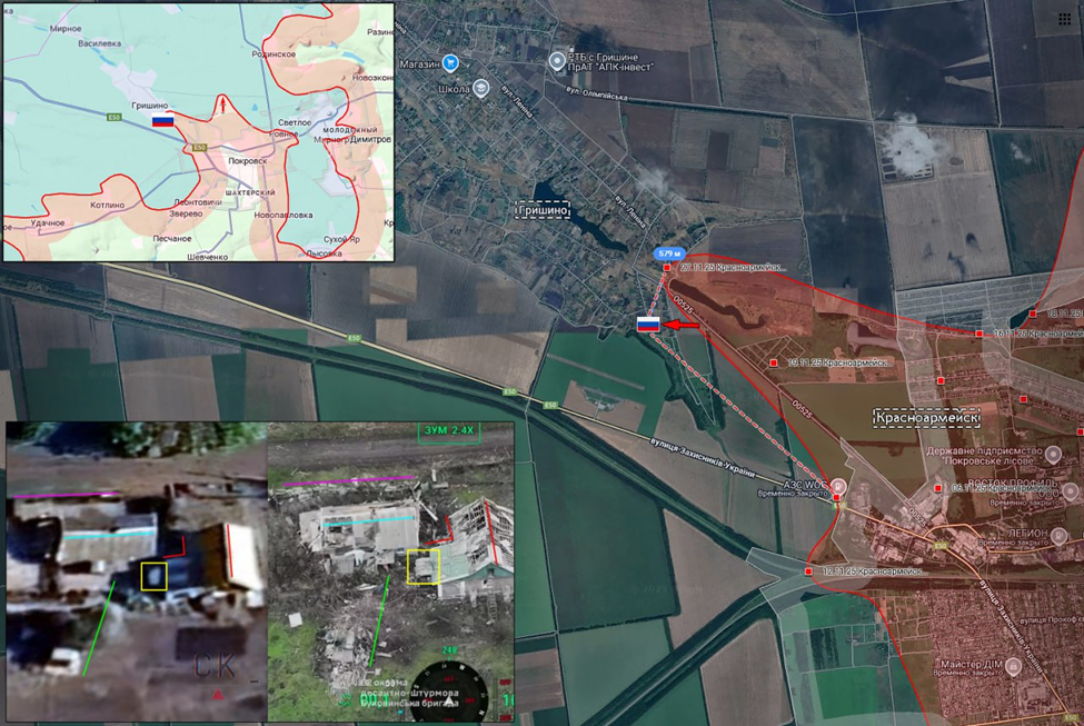 17.12.25 Красноармейск - Гришино Активные боевые действия в районе Красноармейска. Атака ВС РФ пехотным подразделением в Гришино. Штурмовая группа занимает новые позиции в жилой застройке под огнём противника. Увеличение зоны контроля ВС РФ на востоке посёлка до 600 метров по фронту.