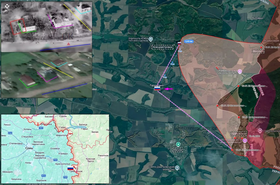 18.04.26 Краснополье - Таратутино Позиционные боевые действия в Сумской зоне безопасности. Передовая позиция ВС РФ в Таратутино подверглась обстрелу ВСУ. ВС РФ продвинулись в Сумской области на 3,5 км и достигли новых позиций в населённом пункте.