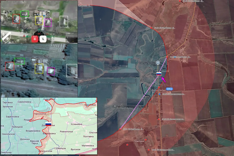 18.04.26 Гуляйполе - Доброполье Позиционные боевые действия в районе Гуляйполя. ВС РФ увеличили зону контроля в Доброполье продвинувшись в жилой застройке посёлка на 600 метров. Передовая позиция обстреляна ВСУ.