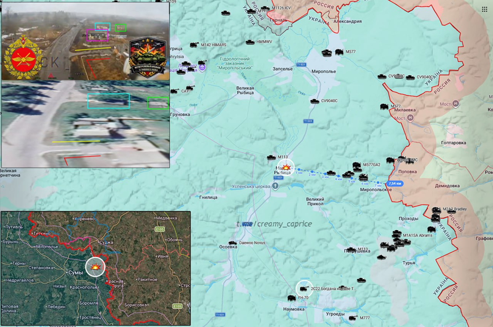 19.03.26 Сумы - Малая Рыбица Контрбатарейная борьба в Сумской зоне безопасности. Расстрел колонны буксируемой артиллерии ВСУ засадными дронами ВС РФ в посёлке Малая Рыбица на удалении 7 км от демаркационной линии. Уничтоженный транспорт ВСУ. https://t.me/Batalion_Piterskyi_Russia/4524