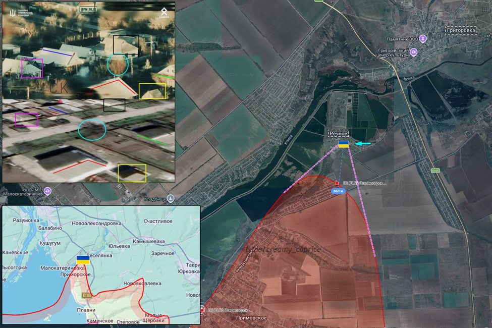 19.03.26 Степногорск - Речное Активные боевые действия в районе Каменского. Атака ВСУ в направлении позиций ВС РФ в посёлке Речное мотострелковой группой. Налёт на позиции ВС РФ в жилой застройке. Военнослужащий ВС РФ попадает в плен. Боевые действий на удалении более 800 метров от зоны контроля ВС РФ.