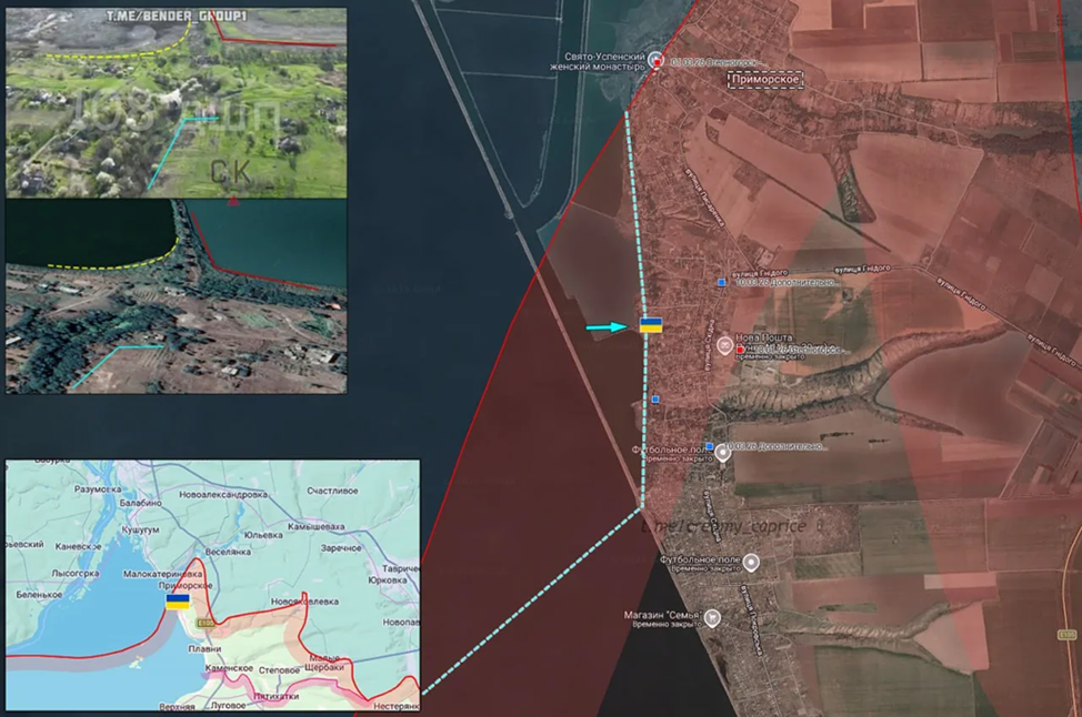 19.04.26 Степногорск - Приморское Активные боевые действия в районе Каменского. Атака ВСУ пехотным подразделением в направлении Приморского. заход малой пехотной группы со стороны дамбы бывшего Каховского водохранилища под огнём ВС РФ. Корректировка зоны контроля ВС РФ по береговой линии бывшего Каховского водохранилища.