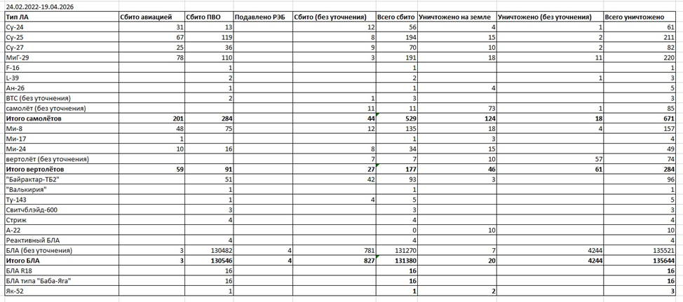 Потери ВВС ВСУ по брифингам МО РФ. Еженедельное обновление.