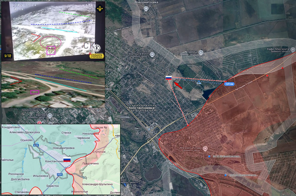 Обстановка в Константиновке кардинальных изменений не претерпела. Вся юго-восточная часть города по трассе находится под нашим уверенным контролем; также удалось ещё глубже расширить зону контроля севернее ж/д вокзала. Идёт работа по пересечению железной дороги, однако на данный момент противник оказывает сильное огневое воздействие. В северо-восточной части города продолжается активная работа по выбиванию логистики противника, который сидит в частном секторе и прилегающем лесу. Это уже даёт свои плоды – возобновилась сдача в плен с передовых позиций. При этом противник аналогично пытается душить нашу логистику, а длина нашего логистического плеча создаёт дополнительные трудности. В южной части города продолжаются бои в районе техникума; при этом из-за постоянной работы по логистике противника он постепенно откатывается севернее, за трассу. Западнее, после закрепления в районе блокпоста, удалось продвинуться в направлении Ильиновки, а также Бересток, но говорить о каком-то контроле пока крайне преждевременно. https://t.me/t3mny/2355