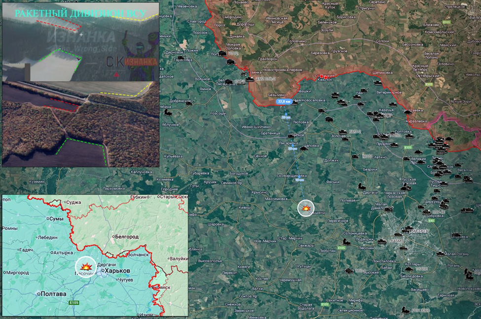 Объективный контроль удара ОТРК "Искандер-М" по району сосредоточения ракетно-артиллерийского дивизиона ВСУ в районе н.п. Сазоно-Балановка Харьковской области https://t.me/lost_armour/7849