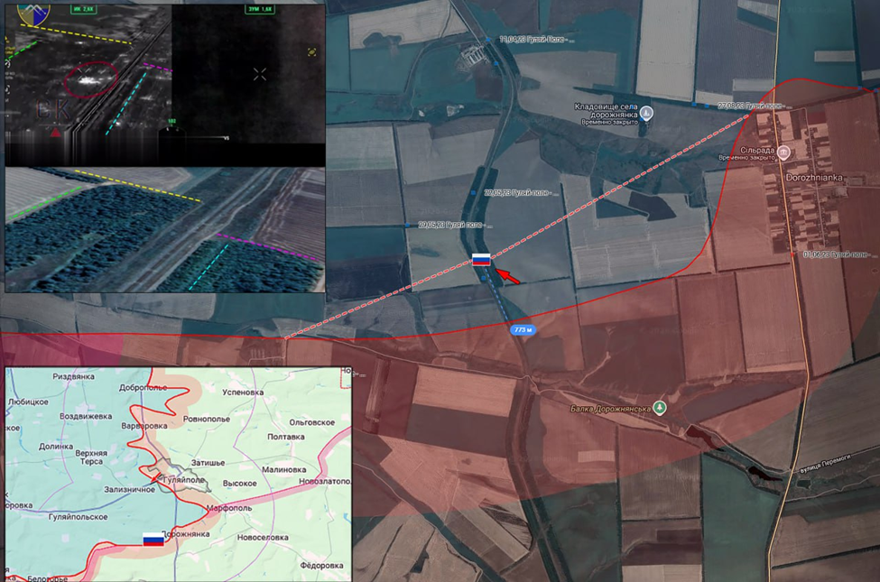 21.01.26 Гуляйполе - Дорожнянка Позиционные боевые действия в районе Гуляйполя. ВС РФ продвинулись на рубеже Дорожнянка - Загорное до 800 метров вдоль железной дороги Пологи - Зализничное. Передовая позиция ВС РФ обстреляна ВСУ.