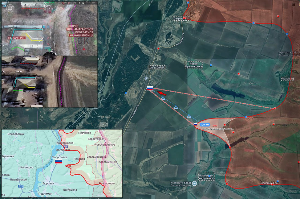 · ВС РФ продвинулись до 4 км вперед и зашли в Богуславку, село не берегу р. Оскол. Так же отмечено существенное продвижение в районе освобожденного Ямполя