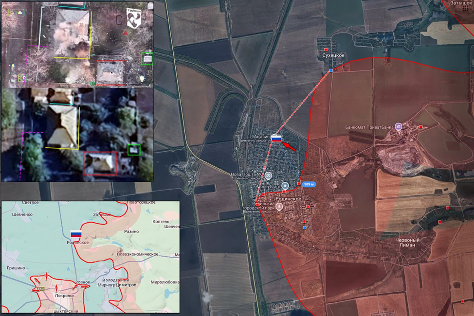 22.11.25 Красноармейск – Родинское. Позиционные боевые действия в районе Красноармейска. Передовая позиция ВС РФ в частном секторе Родинского под огнём ВСУ. ВС РФ расшили зону контроля в жилой застройке на 1 км и заняли новые позиции в северной части города
