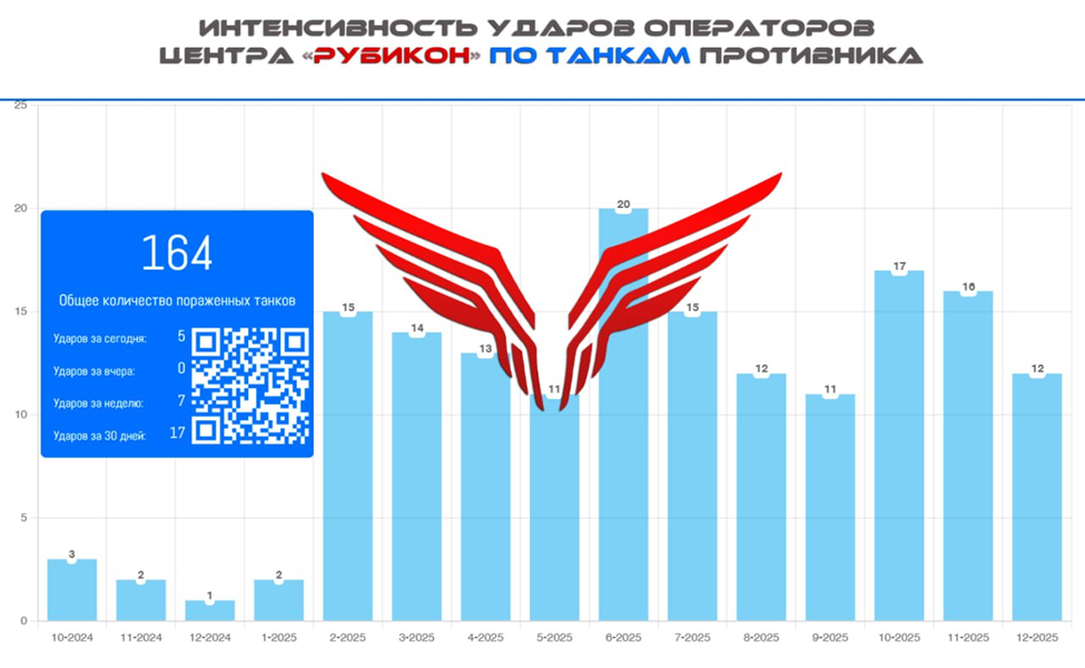 Беспилотная резня танкового потенциала ВСУ 22 декабря 2025 официальным каналом Центра "Рубикон" опубликованы кадры поражения 5 танков противника ударами оптоволоконных FPV-дронов. Всего же за 2025 год операторы Центра поразили свыше 150 танков ВСУ. https://t.me/lost_armour/7522