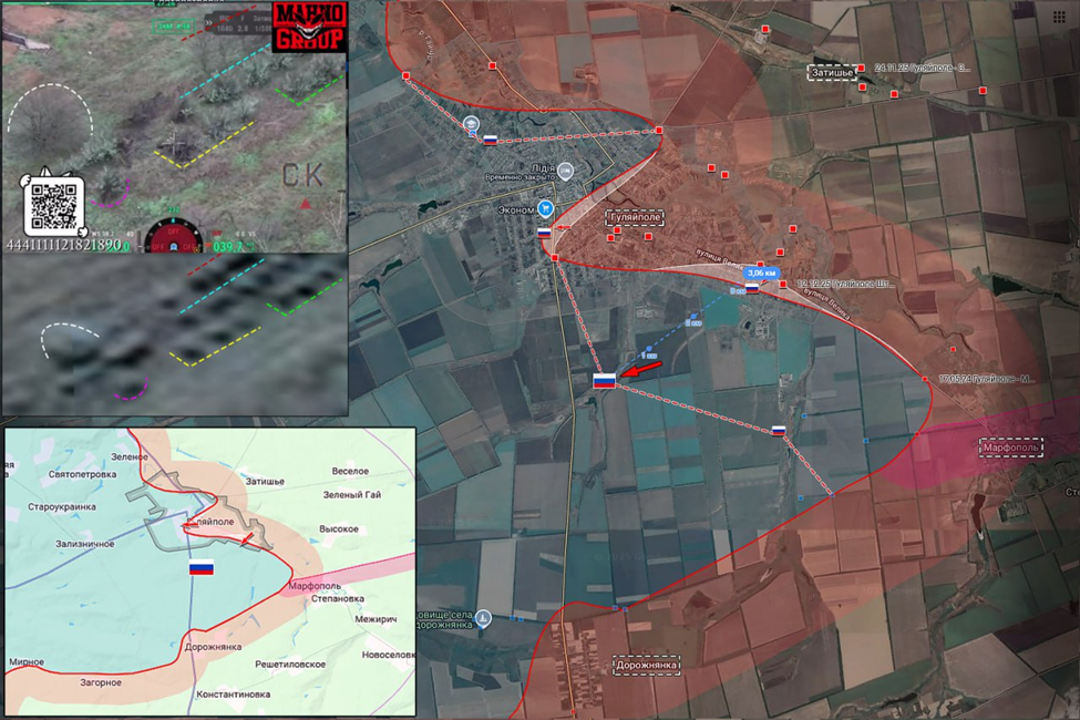 21.12.25 Гуляйполе Активные боевые действия в районе Гуляйполя. Атака ВС РФ пехотным подразделением на южных подступах к городу. Штурмовик ВС РФ попал под обстрел ВСУ. ВС РФ продвинулись около 3 км и вышли к трассе Гуляйполе - Дорожнянка.