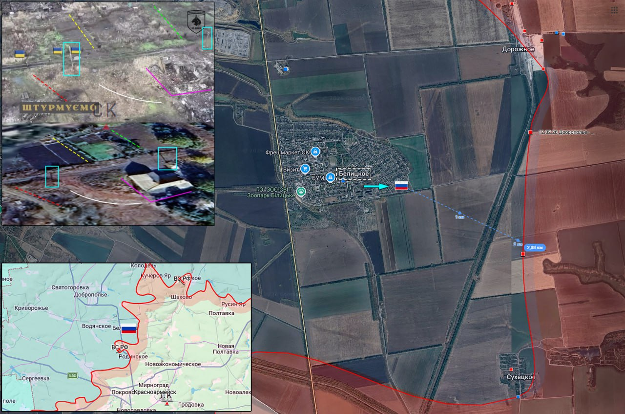24.02.26 Доброполье - Белицкое Активные боевые действия в районе Красноармейска. Атака ВСУ пехотным подразделением в Белицком. Пехотная группа зачищает позицию ВС РФ в частном секторе на восточной окраине города. Боевые действия в 2 км от зоны активных боевых действий.