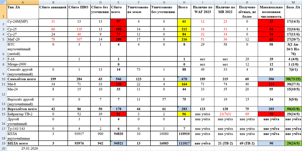 Уничтоженная военная техника ВСУ за 2026-01-25