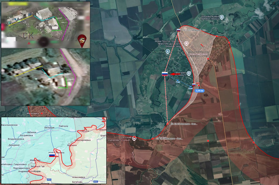 25.11.25 Межевая - Новопавловка Позиционные боевые действия в Днепропетровской зоне безопасности. Штурмовые подразделения ВС РФ форсируют реку Солёная и занимают новые позиции в южной части Новопавловки. Передовые позиции ВС РФ в Новопавловке под огнём ВСУ.