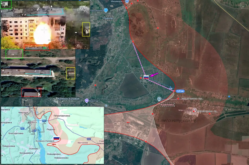 27.04.26 Куриловка - Военный городок Позиционные боевые действия в районе Купянска. Позиция ВС РФ в комплексе многоэтажных зданий в окрестностях Куриловки подверглась обстрелу ВСУ. ВС РФ увеличили зону контроля более 1 км и заняли помещения на территории заброшенного военного городка.