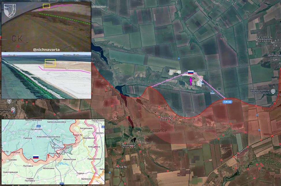 27.04.26 Константиновка - Русин Яр Позиционные боевые действия в районе Горловки. Передовая позиция ВС РФ на глиняном карьере обстреляна ВСУ. ВС РФ продвинулись севернее Русин Яра на 3 км и заняли новые позиции.