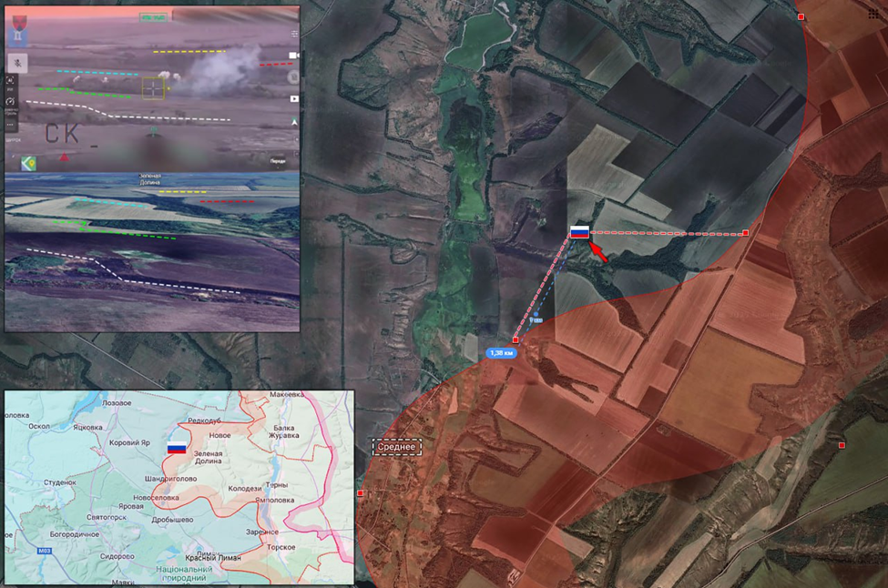 22.11.25 Красный Лиман - Среднее Позиционные боевые действия в районе Красного Лимана. Обстрел из реактивной системы залпового огня позиций ВС РФ на рубеже Карповка - Среднее. Корректировка линии боевого соприкосновения по архивным кадрам, осень 25. Увеличение зоны контроля ВС РФ более 1 км.