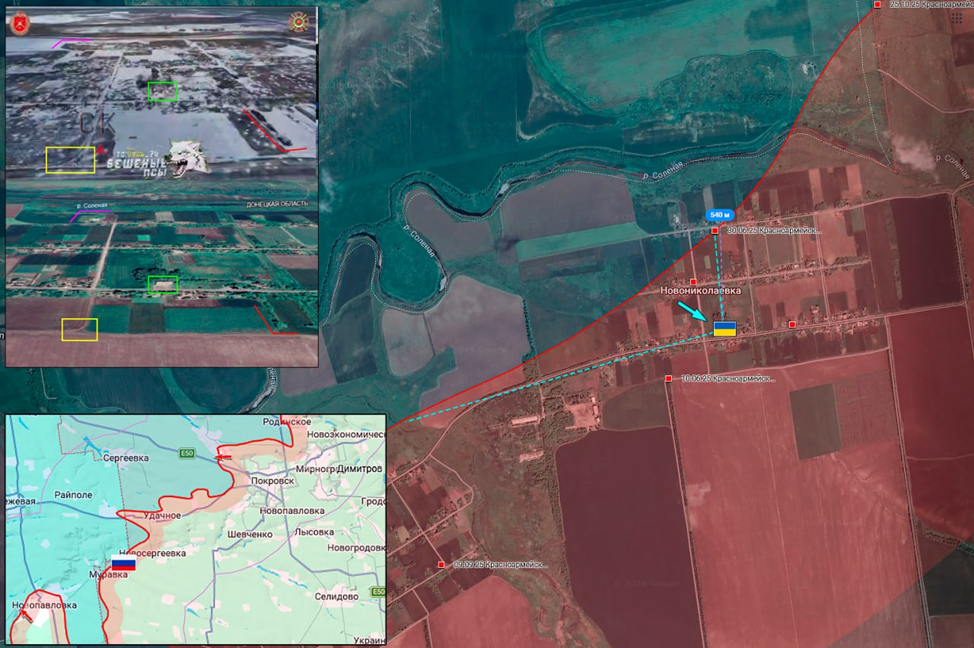 27.01.26 Красноармейск – Новониколаевка. Позиционные боевые действия в районе Красноармейска. Артиллерийский удар со стороны ВС РФ по позиции ВСУ в Новониколаевке. Увеличение зоны контроля ВСУ в жилой застройке посёлка 500 метров. https://t.me/urga_74/8376