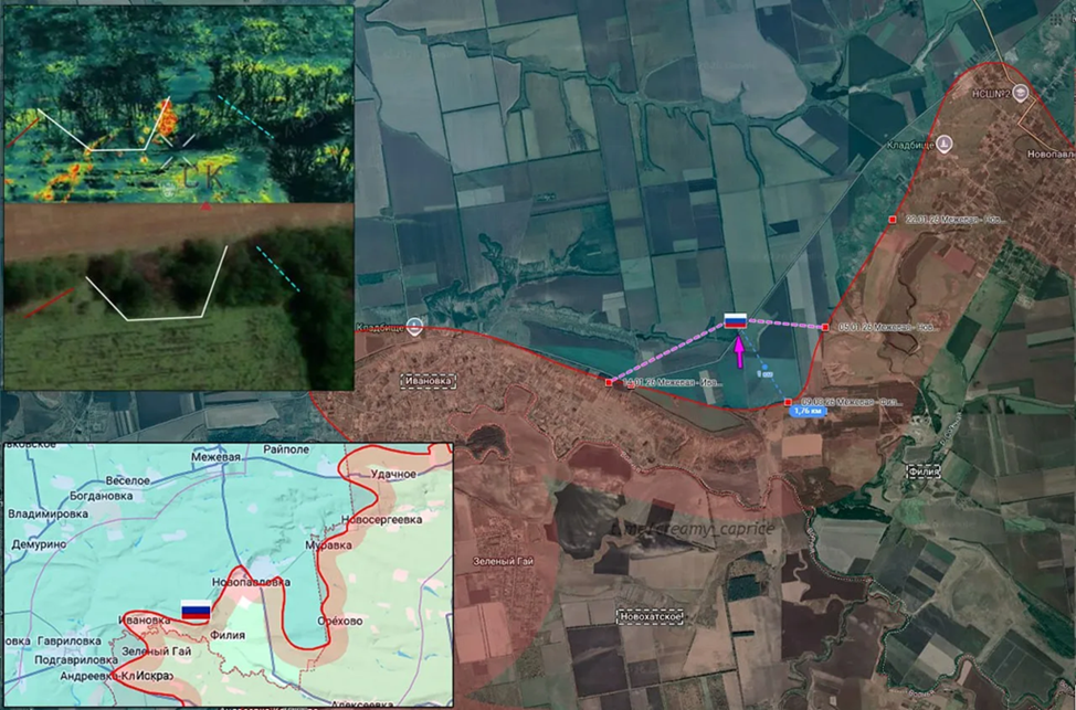 28.03.26 Межевая - Ивановка Позиционные боевые действия в Днепропетровской зоне безопасности. ВС РФ продвинулись восточнее Ивановки на 2 км и заняли новые позиции на северном берегу реки Волчья. Передовая позиция попала под огонь ВСУ.