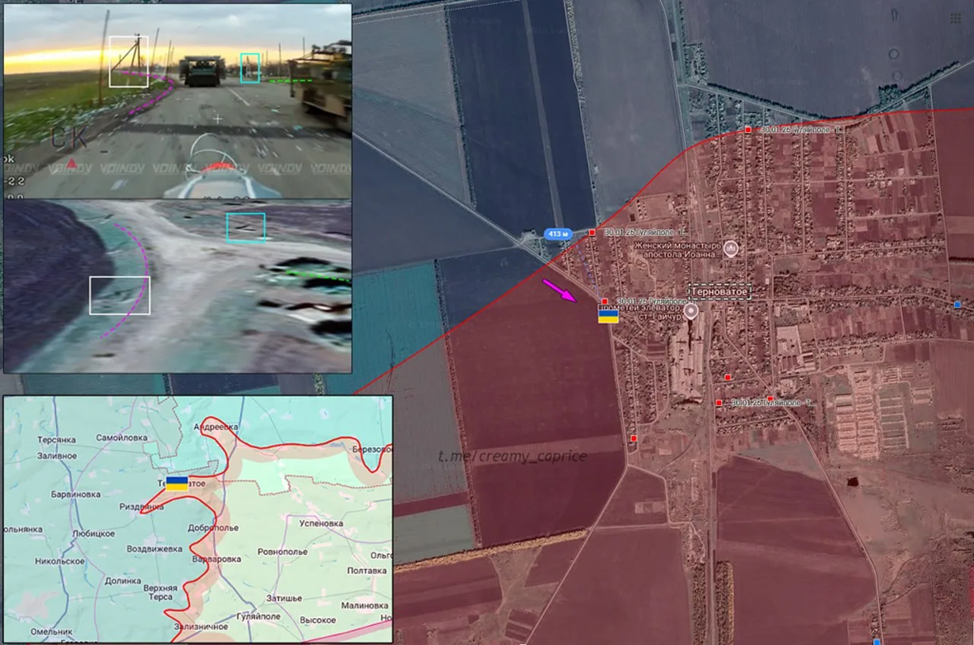 28.03.26 Гуляйполе - Терноватое Активные боевые действия в районе Гуляйполя. Механизированная атака ВСУ в направлении Терноватого под огнём со стороны ВС РФ. Ударами FPV-дронов штурмовая техника остановлена на западном въезде в посёлок. https://t.me/voin_dv/19117