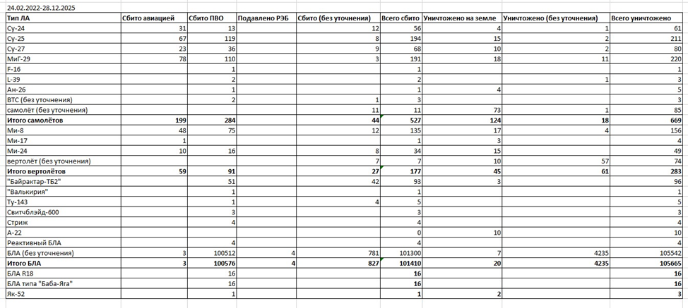 Потери ВВС ВСУ по брифингам МО РФ. Еженедельное обновление. Добавлена строчка «Реактивный БЛА»