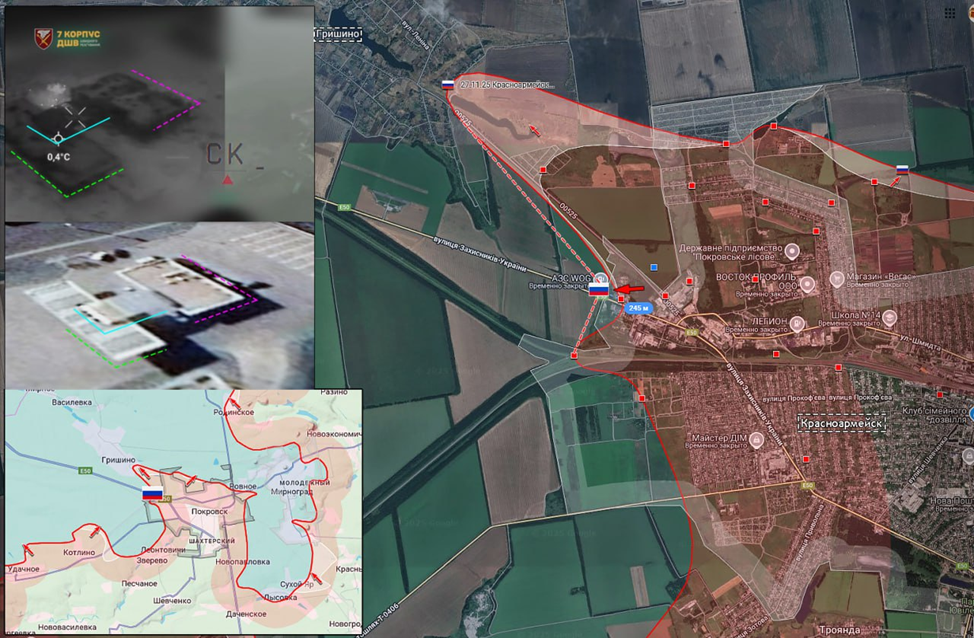 29.11.25 Красноармейск - Посёлок Щербакова. Позиционные боевые действия в районе Красноармейска. ВС РФ заняли новые позиции на автозаправочной станции у трассы Е-50 и взяли под контроль западный въезд в город со стороны Павлограда. Увеличение зоны контроля до 300 метров на окраинах Красноармейска.