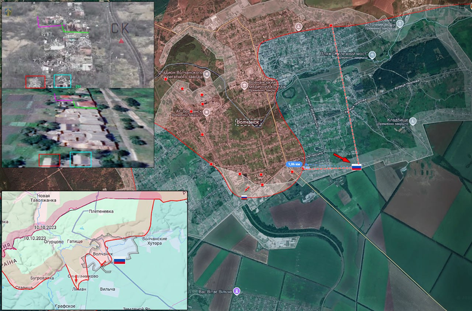 30.11.25 Волчанск - Заводы 2-е. Позиционные боевые действия в Волчанске. ВСУ обстреляли позицию ВС РФ в районе Заводы 2-е с установленным на доме флагом России. ВС РФ увеличили контролируемую часть города Волчанск южнее реки Волчья, продвинувшись на 1 км.